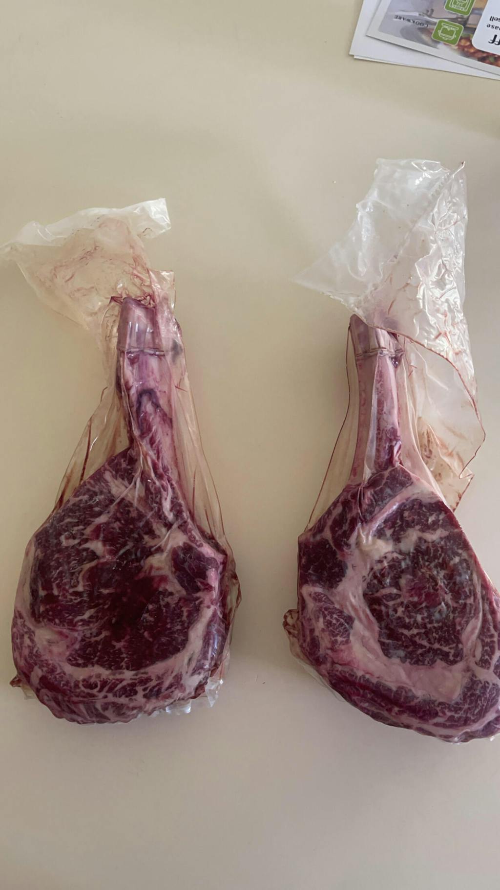 These Tomahawk steaks are nice size and money well spent. They were a present sent to my son in the military and he was so excited to see them in his bag.